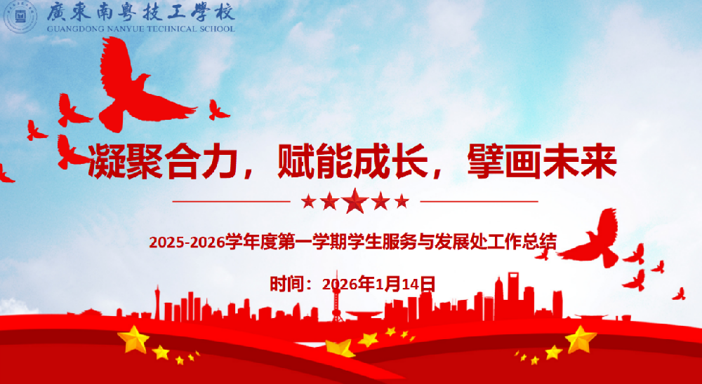 凝聚合力,赋能成长,擘画未来——学生服务与发展处召开2025-2026学年第一学期期末工作总结大会为深入贯彻党的二十届四中全会精神,落实《广东省技工院校关爱学生指导意见》,以立德树人为根本任务,强化学生工作队伍专业化、职业化建设,提升学生管理质量与服务效能,推动学生工作高质量发展,2026年1月14日上午8:30,学生...