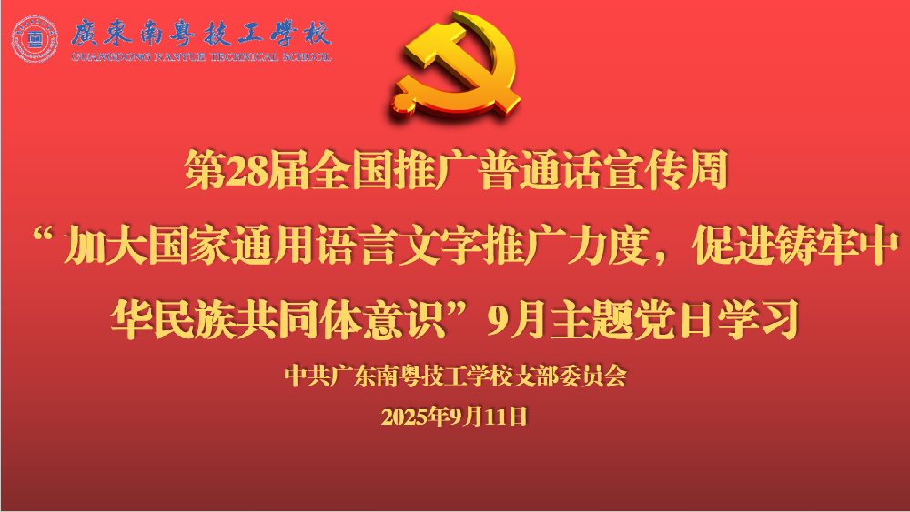 南粤党建 | 我校党支部开展9月主题党日学习活动,全面部署第28届推普周工作