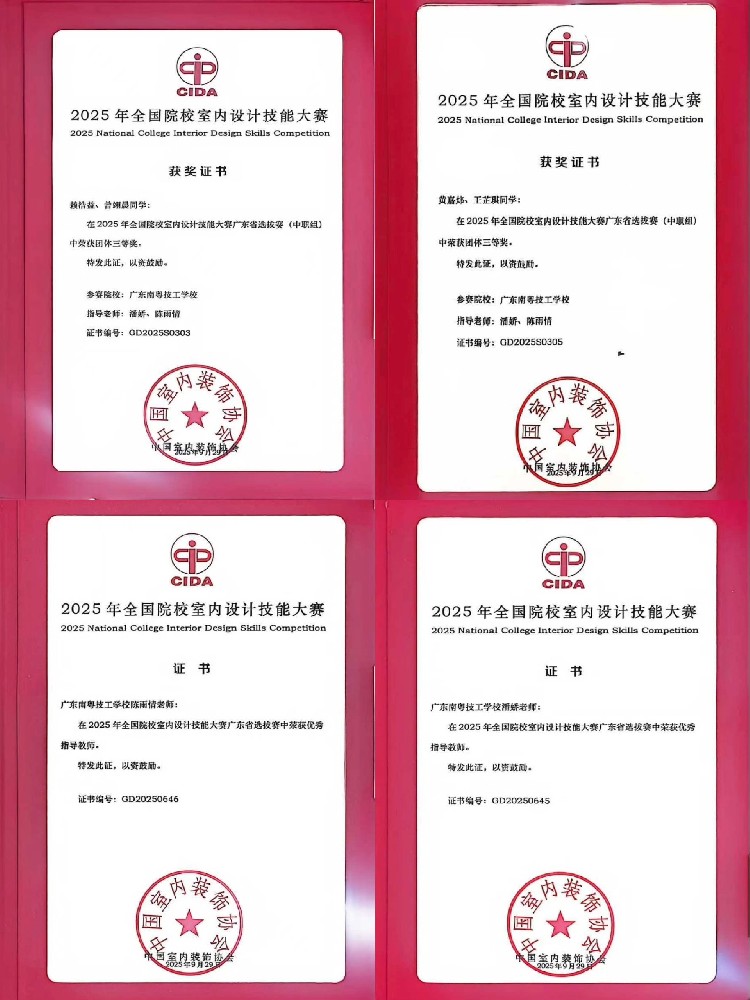 捷报!我校学子在2025全国院校室内设计技能大赛斩获双项团体三等奖广东南粤技工学校广东南粤技工学校2025年10月24日 17:36广东2/0/2/5捷报2025全国院校室内设计技能大赛斩获双项团体三等奖01赛事捷报速递近日,2025年全国院校室内设计技能大赛现场传来喜讯——我校室内设计专业学子曾翊晨、赖浩益、黄嘉炜...