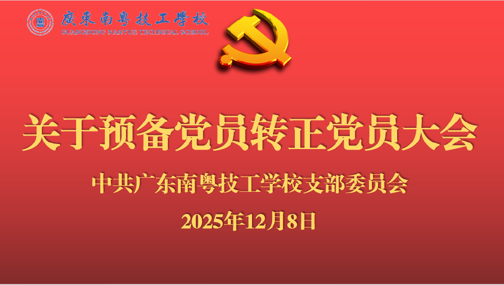 初心如磐·笃行致远——我校党支部召开关于陈晓茵同志转正前征求群众意见、党员意见座谈会以及党员转正大会广东南粤技工学校广东南粤技工学校2025年12月8日 17:06广东为严格落实发展党员工作的民主性与严肃性,进一步加强基层党组织建设,夯实党员队伍根基,根据《中国共产党章程》及《中国共产党发展党员...