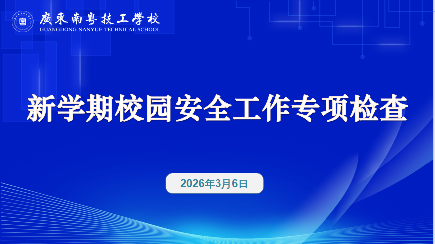 马年新征程 安全伴我行——广东南粤技工学校新学期第一次升旗仪式暨开学第一课顺利举行春风启新程,匠心筑梦行。为深入贯彻立德树人根本任务,厚植师生爱国情怀,传承劳模工匠精神,明确新学期成长方向,2026年3月9日清晨,广东南粤技工学校全体师生身着整齐着装,精神抖擞地齐聚操场,隆重举行2025∼2026学年第二学期第一次...